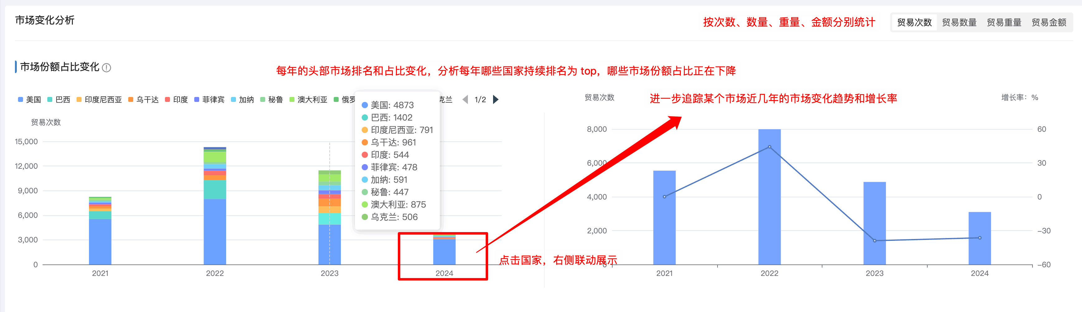 九州ku游官网商情洞察,无需手动频繁搜索与分析,一键即可分析产品贸易趋势、贸易流向、进出口TOP10的国家等,掌握市场趋势,定位高价值区域。